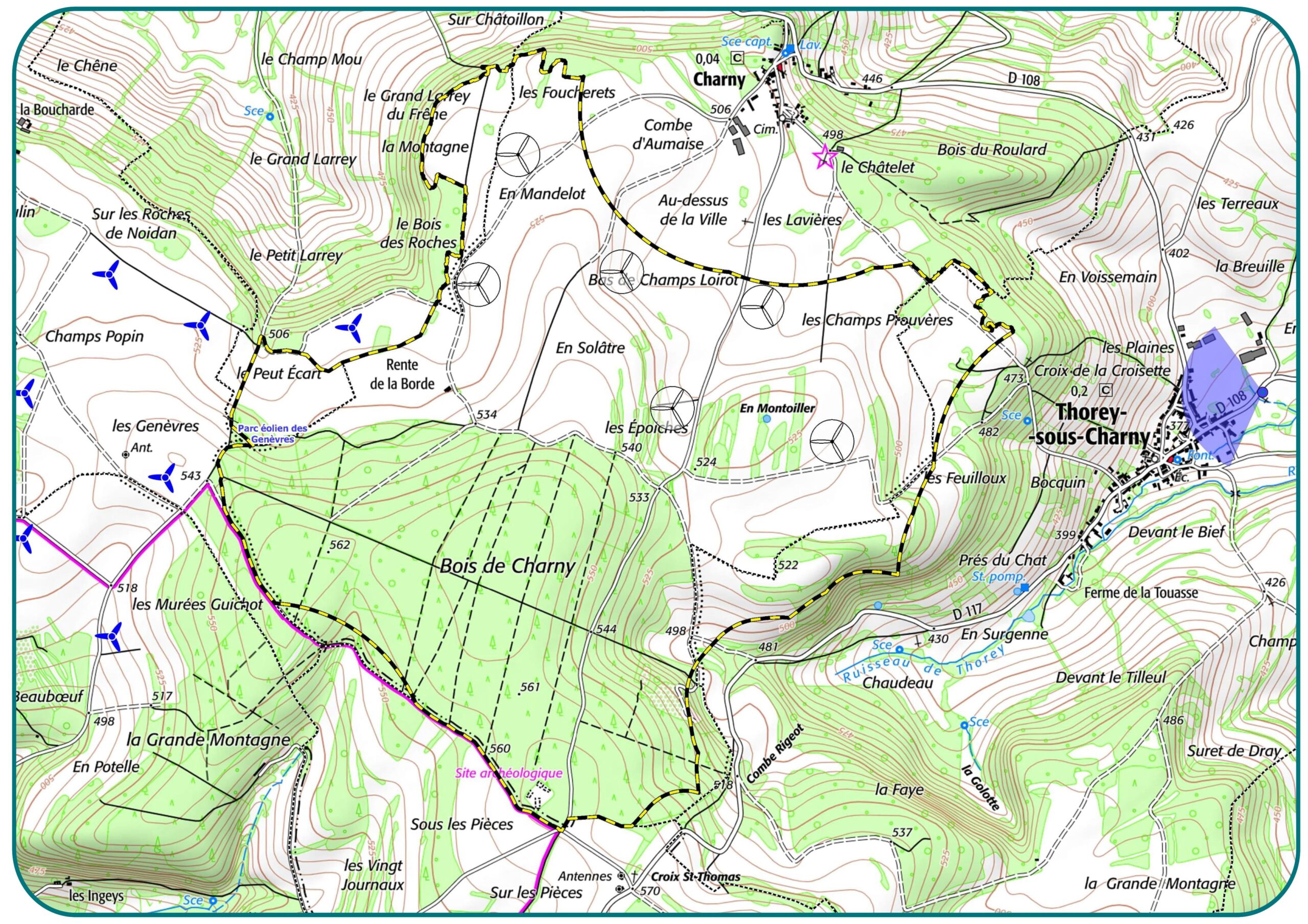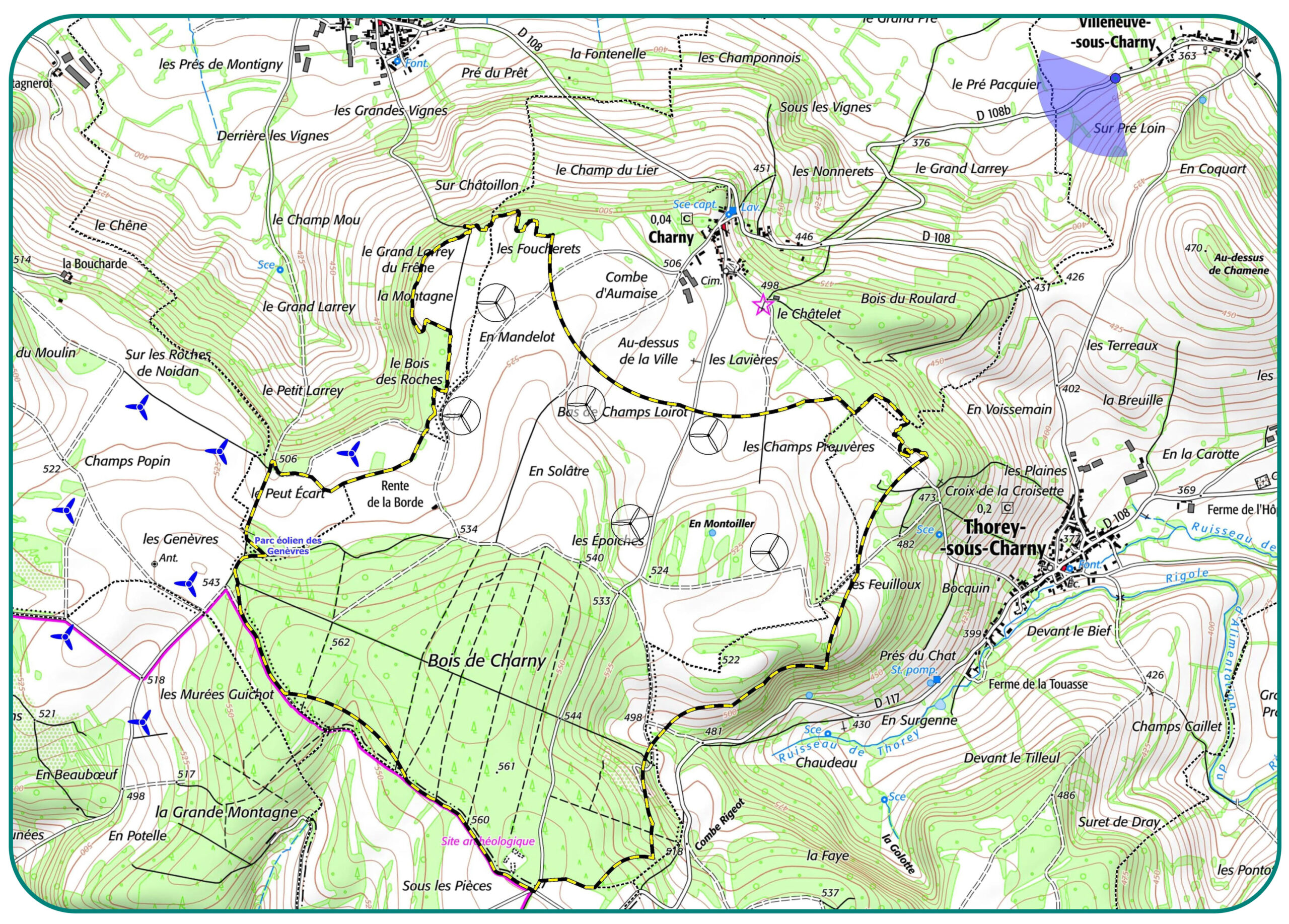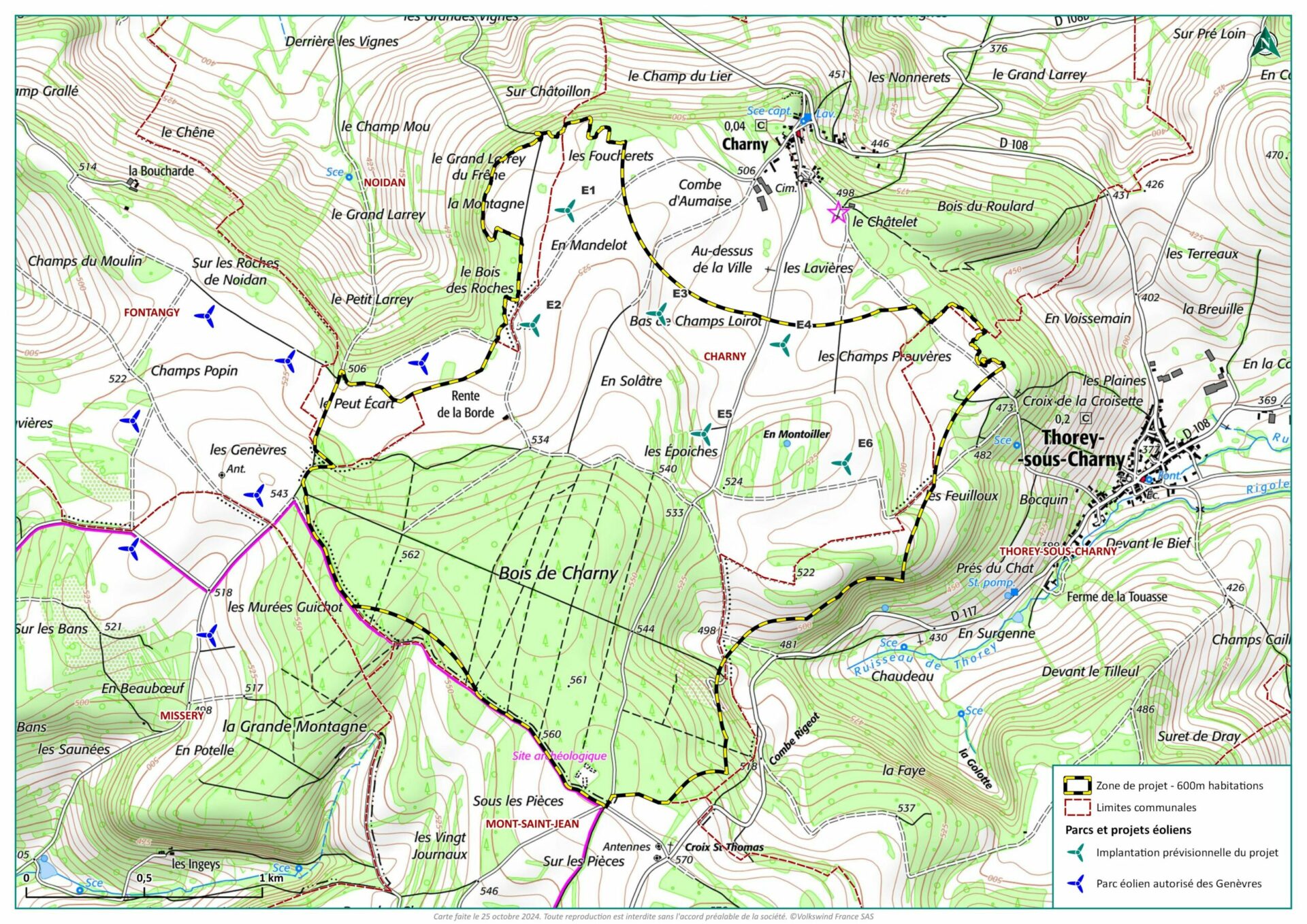 Le projet éolien de Charny est situé sur la commune du même nom. Ce projet se situe au sud du village, en continuité du parc éolien autorisé des Genèvres.